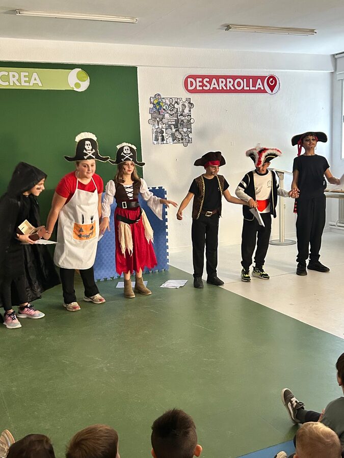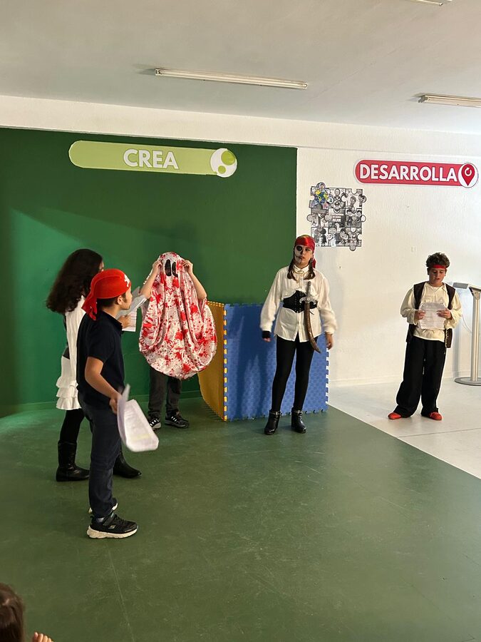 Además, en el Aula del Futuro se realizaron representaciones teatrales que nos hicieron reír con el ingenio de nuestros personajes piratas. Las historias estaban llenas de humor y creatividad, demostrando que el teatro es una herramienta perfecta para desarrollar la expresión y la imaginación.