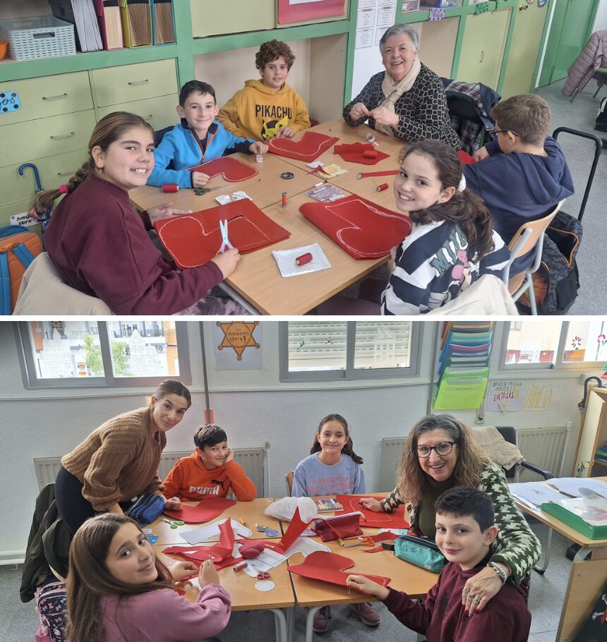 El alumnado de 5.º de Primaria ha participado en un taller de costura navideño en el que han confeccionado una bota de Navidad, contando con la valiosa colaboración de varias familias.